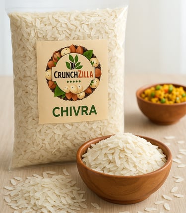 Light, wholesome, and versatile; CrunchZilla’s Chura comes in two classic variants, Kartani and Basmati, perfect for quick and hearty meals.